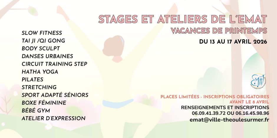 Durant les vacances scolaires de printemps du 13 au 17 avril, l’EMAT vous propose des stages d’initiation et des ateliers.